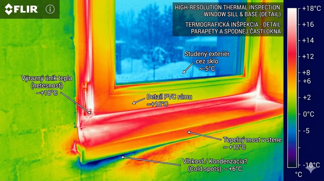 Tepelný most v oblasti parapetu nie je len estetický problém. Ide o miesto, kde vnútorná povrchová teplota klesá pod rosný bod, čo nevyhnutne vedie ku kondenzácii vlhkosti. Pre majiteľa novostavby to znamená vlhké kúty, degradáciu omietok a v najhoršom prípade vznik plesní, ktoré ohrozujú zdravie obyvateľov.