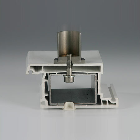 použitie pre jednostranné ukotvenie, madlo je pripevnené nerezovou skrutkou, ktorá je vsunutá do výstuže profilu cez vyvŕtaný otvor zaslepený plastovou skrutkou